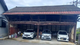 施工前車庫が老朽化でいつ壊れてもおかしくない状態なので、車庫を解体するのでその後、カーポートと物置を設置したいとのご相談がありました。※解体は弊社では行っておりません。施工後YKK APジーポートPro 1500タイプ H25 間口延長柱…