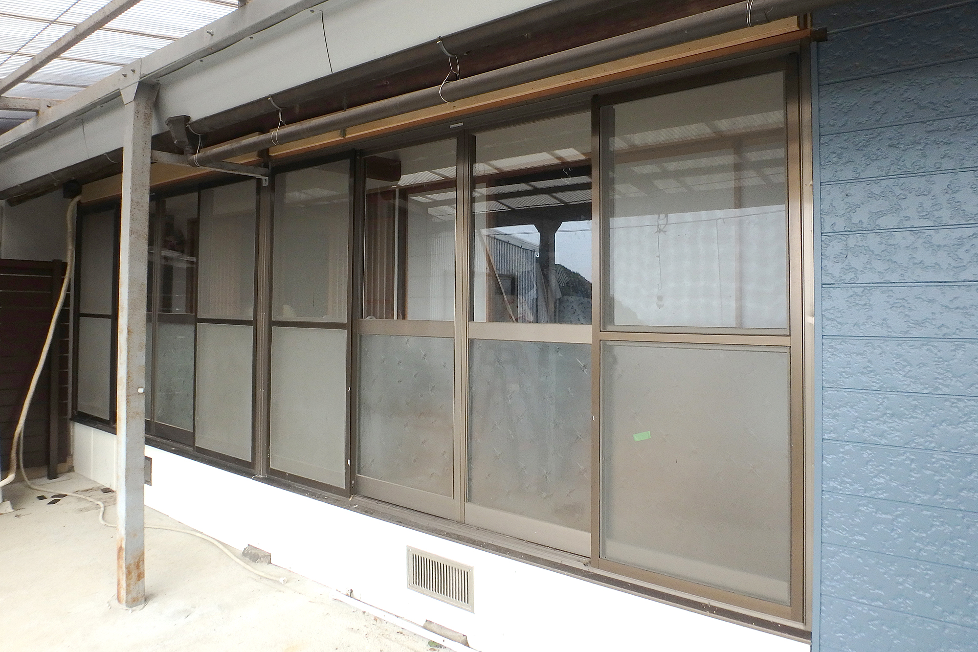 地震以来、縁側の窓の一部が開閉困難になり、とりあえずほかの窓は開くのでそのままにしていたそうです。