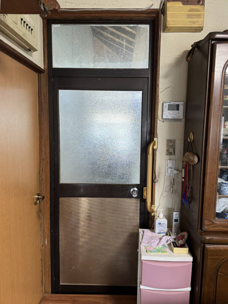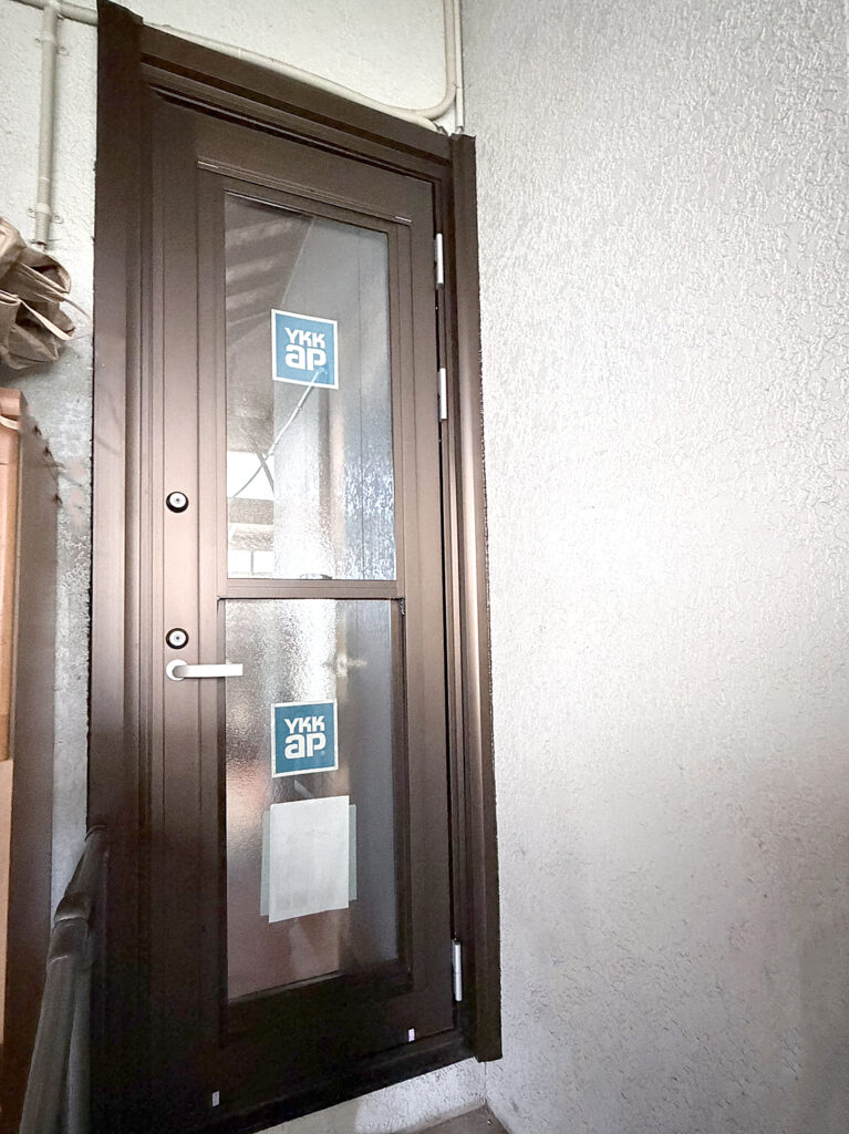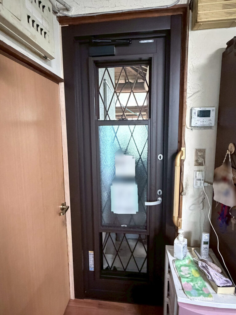 熊本市西区 開口部リフォーム②勝手口(O様邸) サッシ・ガラス X Facebook LINE コピー 2026.04.27 施工前 玄関の鍵の不具合をきっかけに開口部のリフォームをさせて頂きました。 -台所-勝手口取替 ①玄関 ③シャッター ④内窓 施工後 -お施主様の声-ドアを閉めたままでも風が通るので、とても便利です! YKK APドアリモ 勝手口ドア(通風)アルミ樹脂複合枠(W723×H2134)外観色:ブラウン 内観色:ミディアムオーク 右勝手 ラチス格子遮熱LowEブルー型FL3+F4K樹脂スペーサー空気層15 ガス入り
