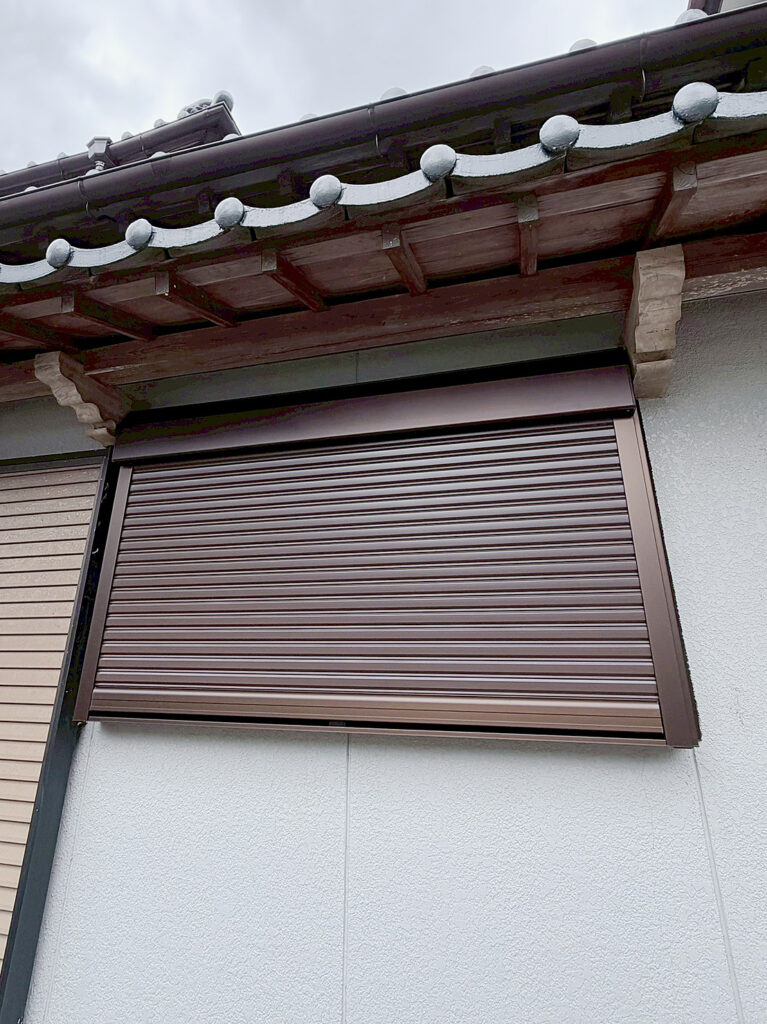熊本市西区 開口部リフォーム③シャッター(O様邸) サッシ・ガラス X Facebook LINE コピー 2026.04.27 施工前 玄関の鍵の不具合をきっかけに開口部のリフォームをさせて頂きました。-台所窓-他の窓には雨戸が付いて安心だけど、窓が小さくても心配なのでシャッターを取り付けたいとの事。 ①玄関 ②勝手口 ④内窓 施工後 -お施主様の声-防犯・台風対策を何もしていなかったので、シャッターがついて安心しました。 YKK AP マドリモシャッター 耐風手動シャッターGR ブラウン色(W1706×H837)